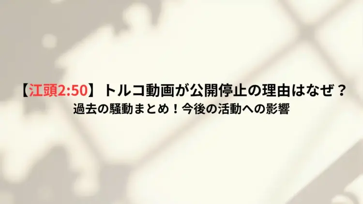 今回の騒動は、YouTubeで大成功を収めていた江頭さんにとって、今後の活動を左右する過去最大級の試練となる可能性があります。