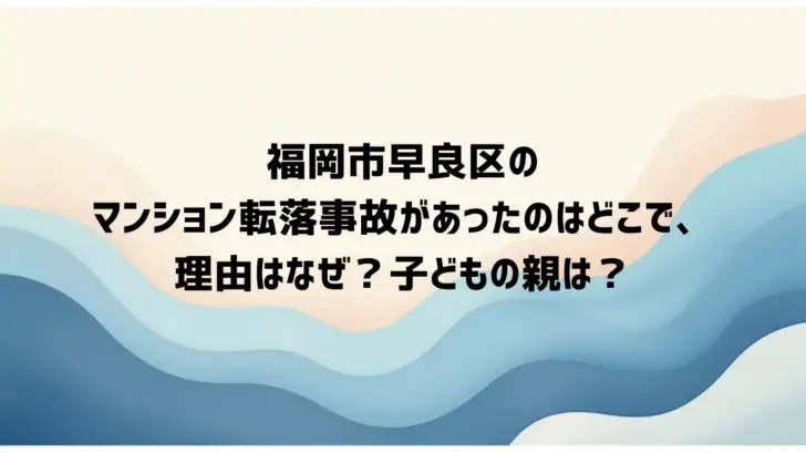 2025年8月24日、福岡市早良区で発生した3歳の女の子のマンション転落事故は、多くの人々に衝撃を与えました。