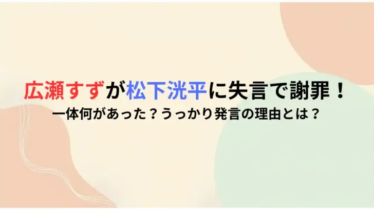 一見すると「失言」と捉えられかねないこの出来事は、その後の広瀬すずさんの謝罪と、松下洸平さんの心温まる対応によって、二人の素敵な関係性を浮き彫りにする微笑ましいエピソードとして話題になっています。