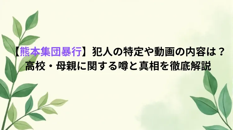 この記事では、熊本集団暴行事件の概要から、ネット上で拡散されている特定情報、高校や母親に関する噂の真相まで、現在判明している情報を整理して解説します。感情的な煽りを排除し、事実と噂を明確に区別してお伝えしますので、事件の全容を正しく理解するための参考にしてください。