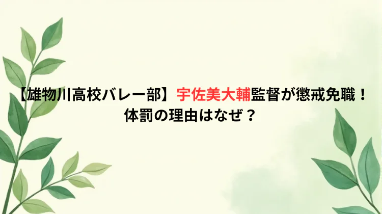 雄物川高校バレー部の宇佐美大輔監督が懲戒免職!