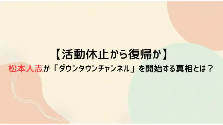 しかし、大きな動きとして、所属事務所の吉本興業が2025年11月1日からダウンタウンの新配信サービス「ダウンタウンチャンネル(仮称)」を開始することを発表しました。