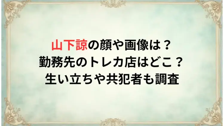 事件の主犯格とされる山下諒被告の人物像や、犯行現場となった店の情報を多くの人が知りたいようです。特に「勤務先のトレカ店はどこか」「顔画像はあるのか」という点に関心が集まっています。