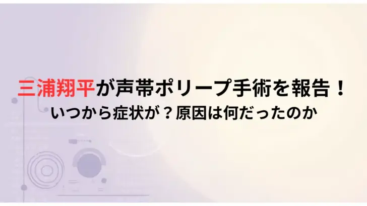 人気俳優の三浦翔平さんが、声帯ポリープの切除手術を受けたことを自身のインスタグラムで公表し、多くのファンから心配と応援の声が寄せられています。